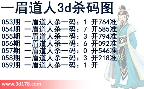 该一眉道人3d杀码图由3d之家3d图库频道原创,仅供彩民参考,温馨提供。