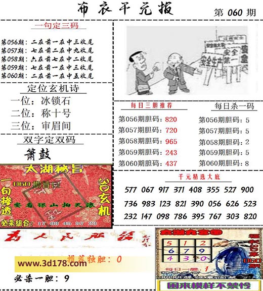 福彩3d布衣图库布衣千元报第2022060期定位玄机诗:
