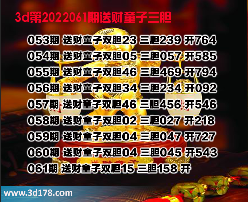 下面我们一起来回顾一下3d之家胆码图送财童子三胆近期推荐详情: