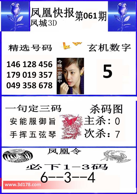 福彩3d凤凰快报图第22061期精选号码推荐:
