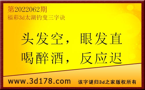 3d第22062期太湖字谜:头发空,眼发直,喝醉酒,反应迟