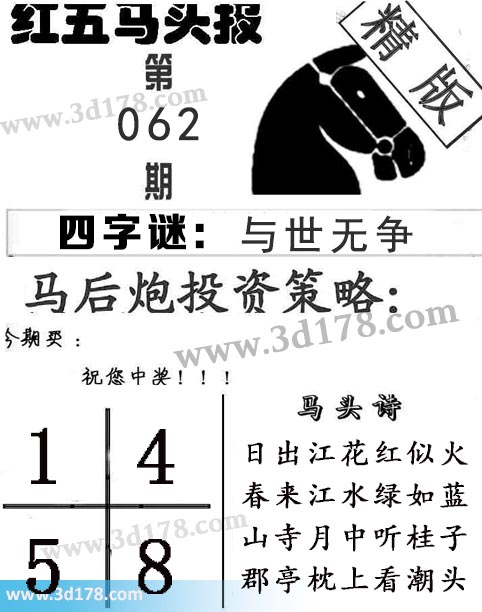 3d第2022062期红五马头报本期马头诗详解: