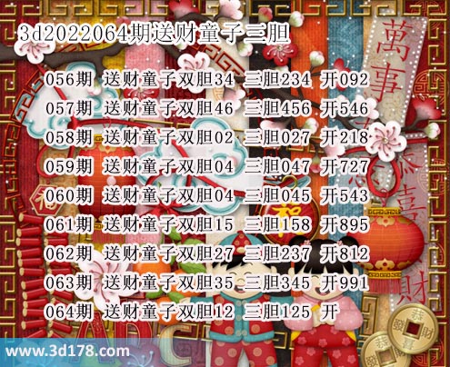 下面我们一起来回顾一下3d之家胆码图送财童子三胆近期推荐详情: