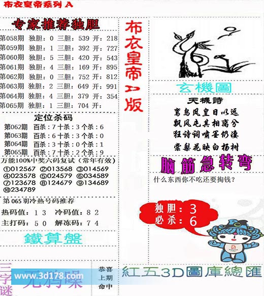 福彩3d第2022065期布衣皇帝A版布衣专家独家推荐:
