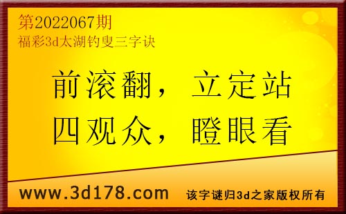 3d第22067期太湖字谜:前滚翻,立定站,四观众,瞪眼看