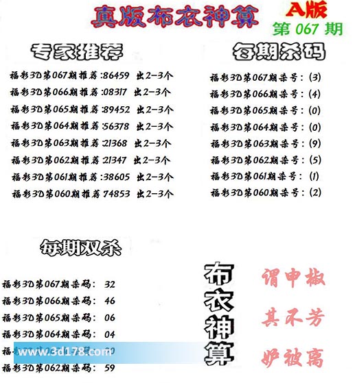 3d之家布衣图库之布衣神算图第2022067期详解: