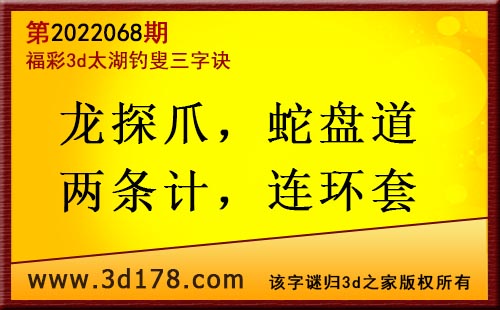 3d第22068期太湖字谜:龙探爪,蛇盘道,两条计,连环套
