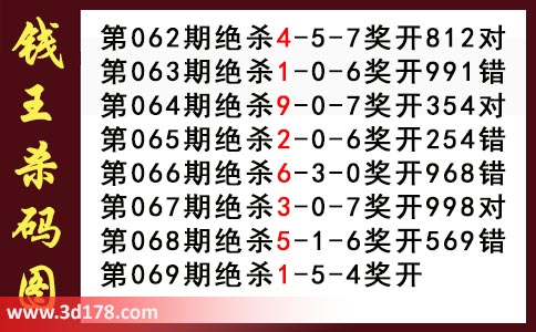 近期3d钱王杀码具体详情: