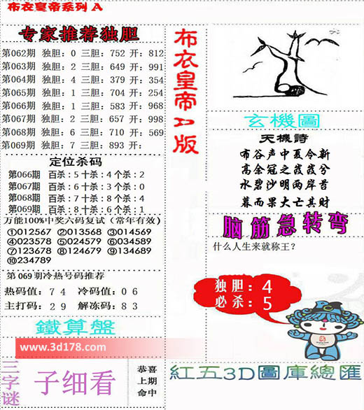 福彩3d第2022069期布衣皇帝A版布衣专家独家推荐: