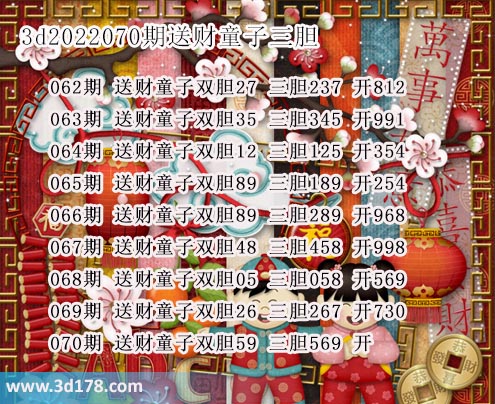 070期 送财童子双胆59 三胆569 开