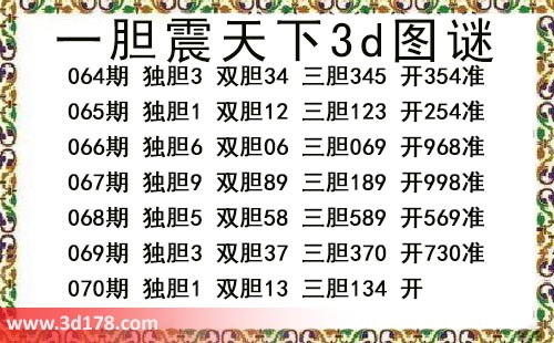本期一胆震天下3d图谜: