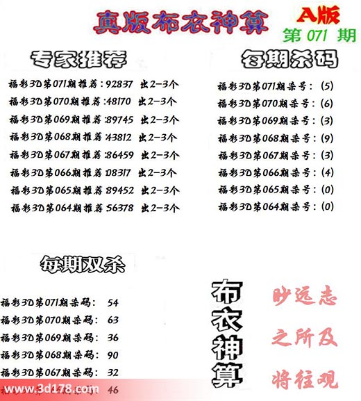 3d之家布衣图库之布衣神算图第2022071期详解: