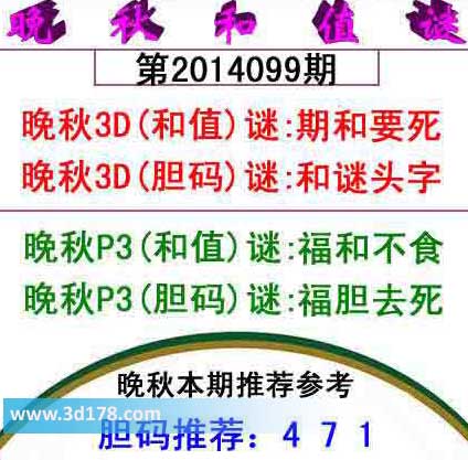 晚秋3D(和值)谜:期和要死
