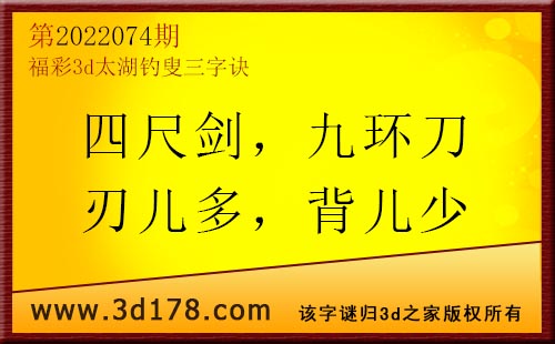 3d第22074期太湖字谜:四尺剑,九环刀,刃儿多,背儿少