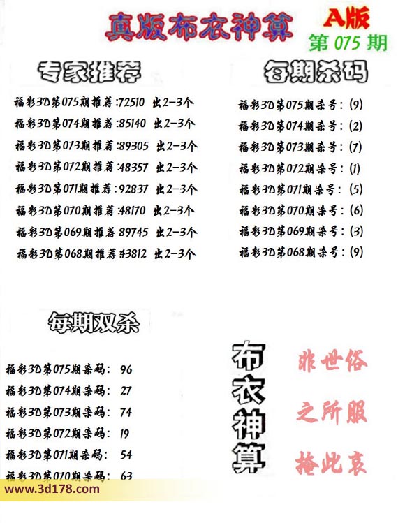 3d之家布衣图库之布衣神算图第2022075期详解: