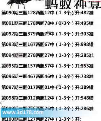 3d之家第100期蚂蚁神算胆码推荐: