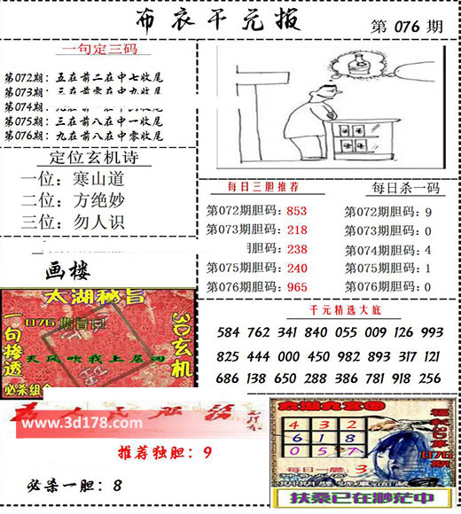 福彩3d第2022076期布衣千元报图详情分析如下: