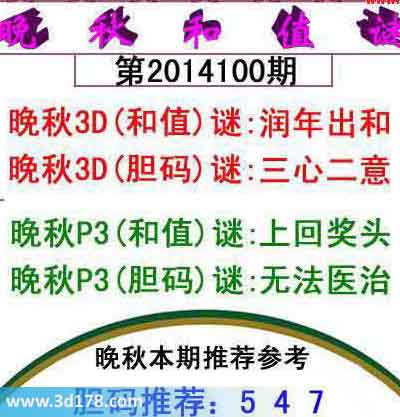 晚秋3D(和值)谜:润年出和
