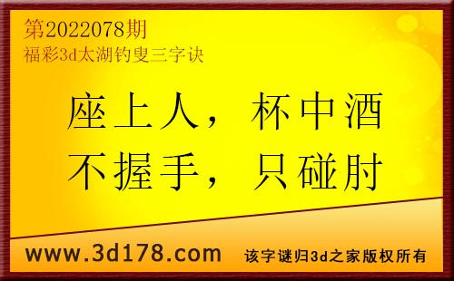 3d第22078期太湖字谜:座上人,杯中酒,不握手,只碰肘