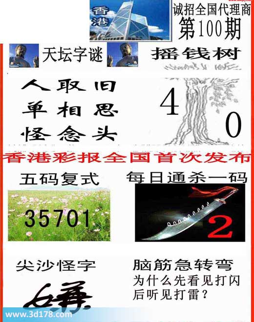 3d之家第2014100期香港彩报图推荐: