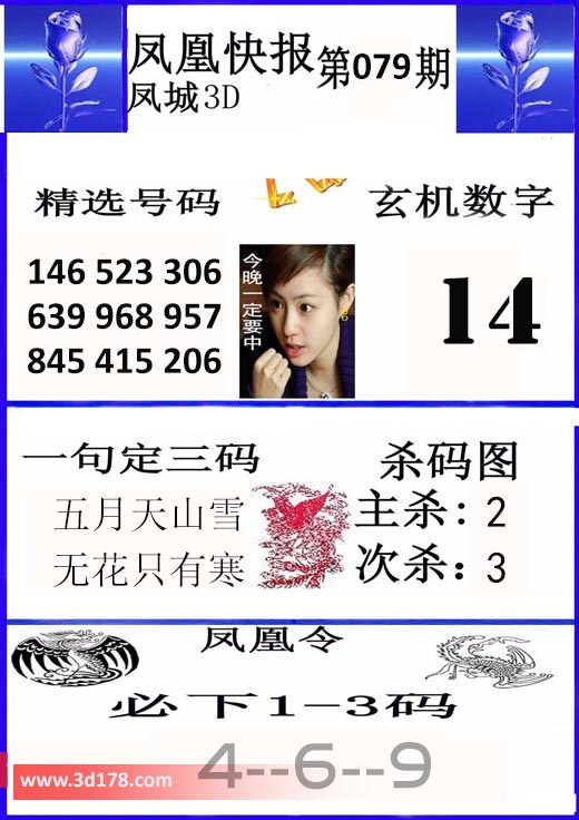 福彩3d凤凰快报图第22079期精选号码推荐: