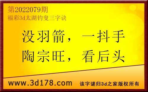 3d第22079期太湖字谜:没羽箭,一抖手,陶宗旺,看后头