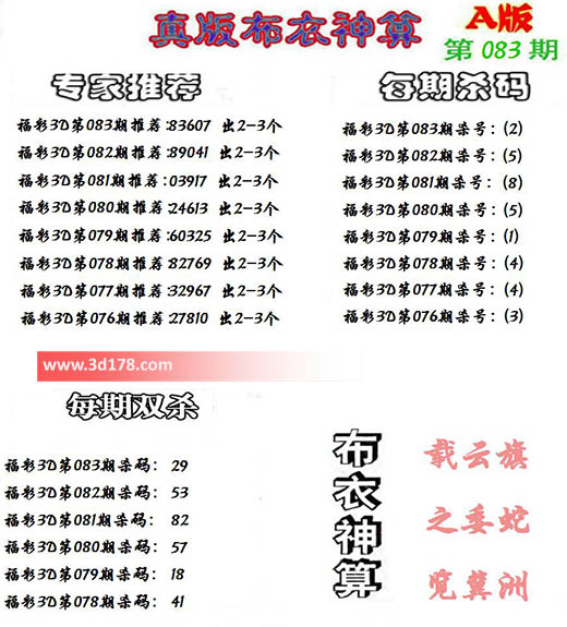 3d之家布衣图库之布衣神算图第2022083期详解: