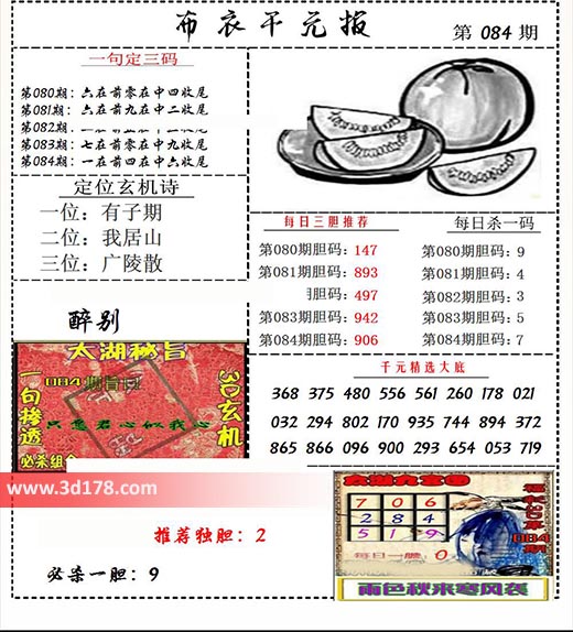 福彩3d布衣图库布衣千元报第2022084期定位玄机诗: