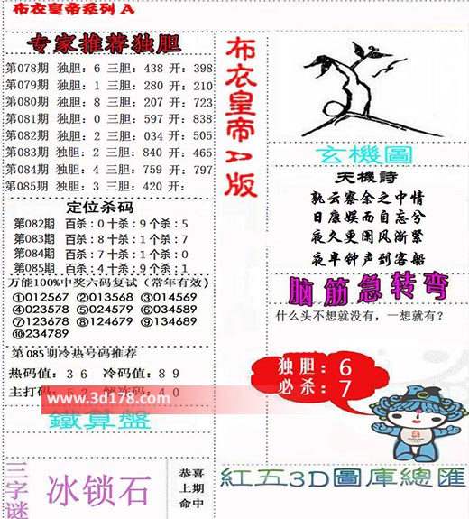 福彩3d第2022085期布衣皇帝A版布衣专家独家推荐: