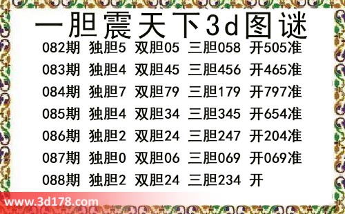 一胆震天下三胆图库由3d之家3d图库频道原创,仅供彩民参考,温馨提供。
