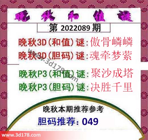 晚秋3D(胆码)谜:魂牵梦萦
