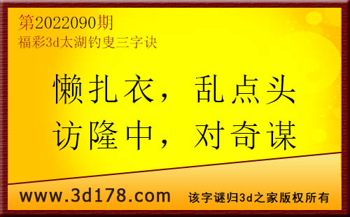 3d第2022090期太湖字谜:懒扎衣,乱点头,访隆中,对奇谋