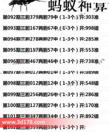 福彩3d之家第102期蚂蚁神算胆码推荐: