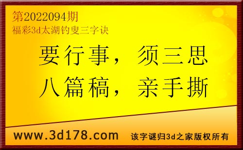 3d第22094期太湖字谜:要行事,须三思,八篇稿,亲手撕