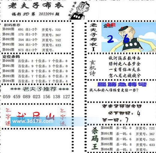 福彩3d第2022094期老夫子布衣图详情: