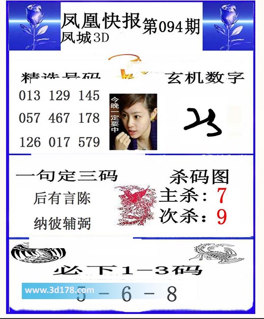 福彩3d凤凰快报图第22094期精选号码推荐: