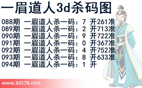 该一眉道人3d杀码图由3d之家3d图库频道原创,仅供彩民参考,温馨提供。