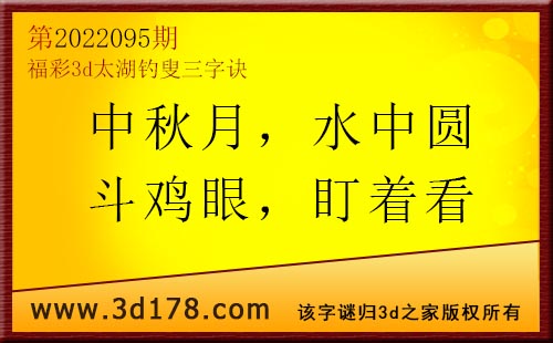3d第22095期太湖字谜:中秋月,水中圆,斗鸡眼,盯着看