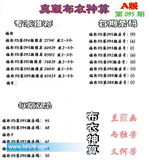 3d之家布衣图库之布衣神算图第2022095期详解: