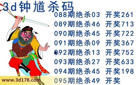 近期3d钟馗杀码的杀号详细如下:
