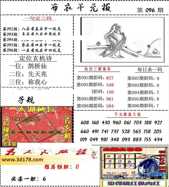 福彩3d布衣图库布衣千元报第2022096期定位玄机诗: