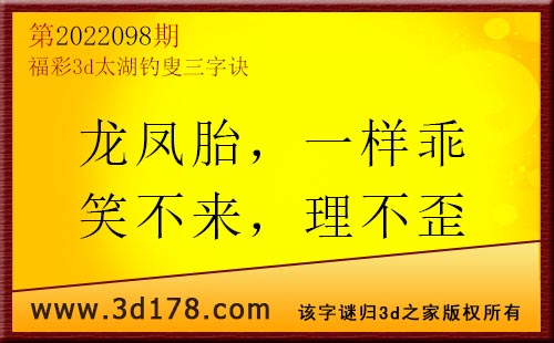 3d第22098期太湖字谜:龙凤胎,一样乖,笑不来,理不歪