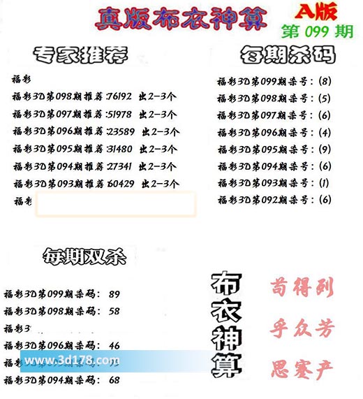 3d之家布衣图库之布衣神算图第2022099期详解:
