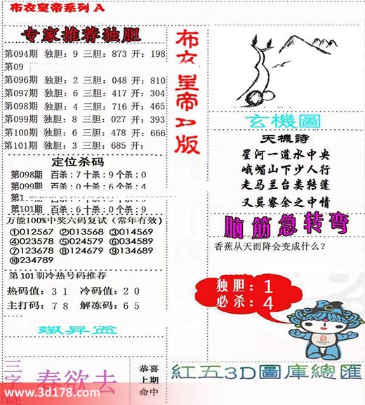 101期:独胆3 三胆685