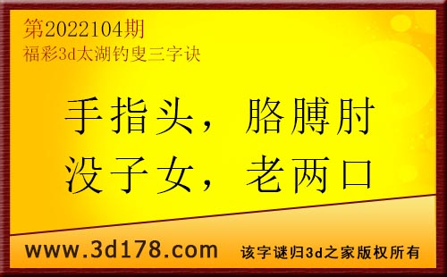 3d第22104期太湖字谜:手指头,胳膊肘,没子女,老两口