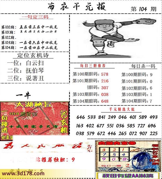 福彩3d第2022104期布衣千元报图详情分析如下: