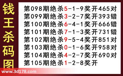近期3d钱王杀码具体详情: