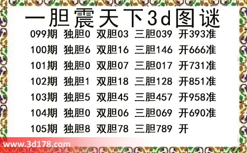 一胆震天下三胆图库由3d之家3d图库频道原创,仅供彩民参考,温馨提供。