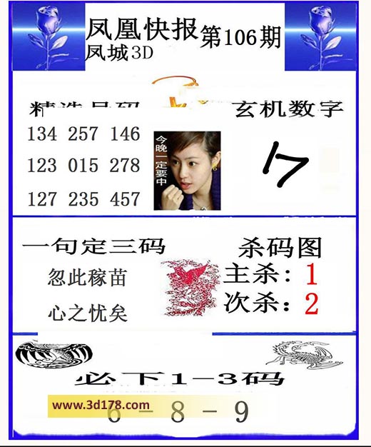 福彩3d凤凰快报图第22106期精选号码推荐: