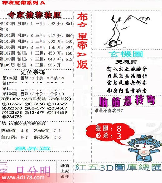 福彩3d第2022109期布衣皇帝A版布衣专家独家推荐: